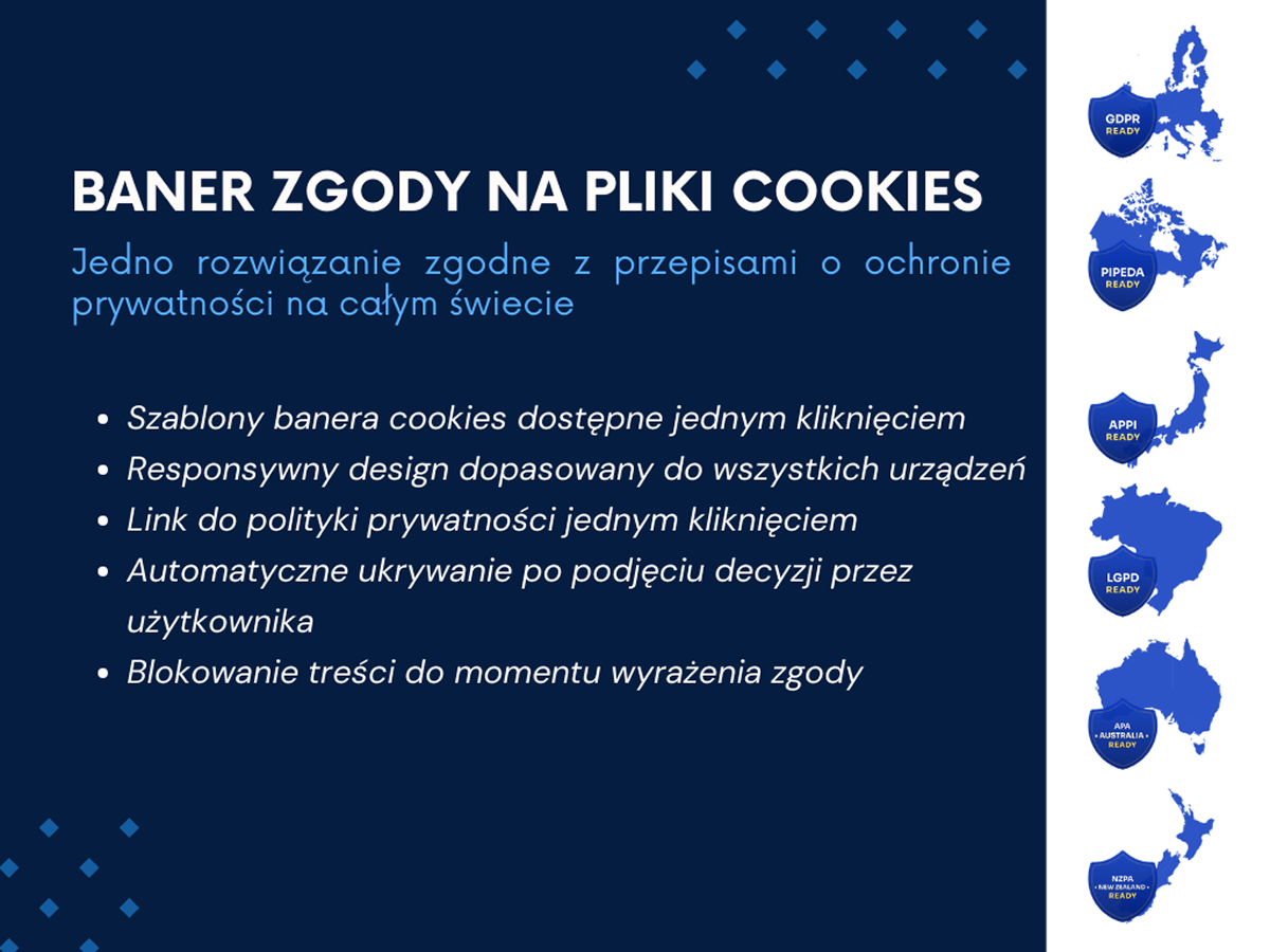 Spraw, aby Twoja strona internetowa była zgodna z GDPR, RGPD, CCPA, PIPEDA, APPI, LGPD, APA, NZPA oraz przepisami o ochronie prywatności w USA w zaledwie kilka minut dzięki rozwiązaniu do zarządzania zgodą na cookies. Umożliwiaj odwiedzającym akceptowanie, odrzucanie lub zarządzanie cookies zgodnie z obowiązującymi regulacjami.