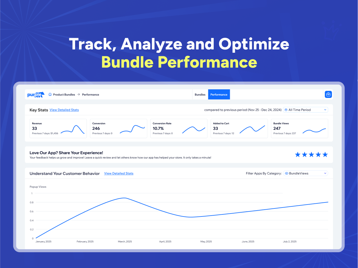 Niezależnie od tego, czy prowadzisz sprzedaż krzyżową, starannie dobrane zestawy prezentowe, czy oferty multi-buy, ta aplikacja pomaga Ci sprzedawać więcej produktów w każdej transakcji — jednocześnie dając Ci pełną kontrolę nad cenami, zyskiem i doświadczeniem klienta. Wbudowane funkcje analityczne pozwalają śledzić skuteczność pakietów, monitorować rentowność i podejmować decyzje oparte na danych, aby optymalizować oferty w czasie.