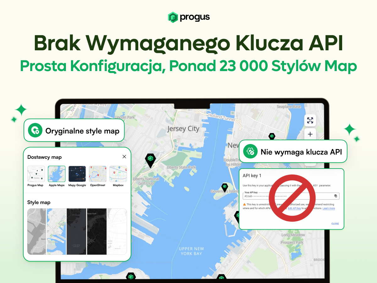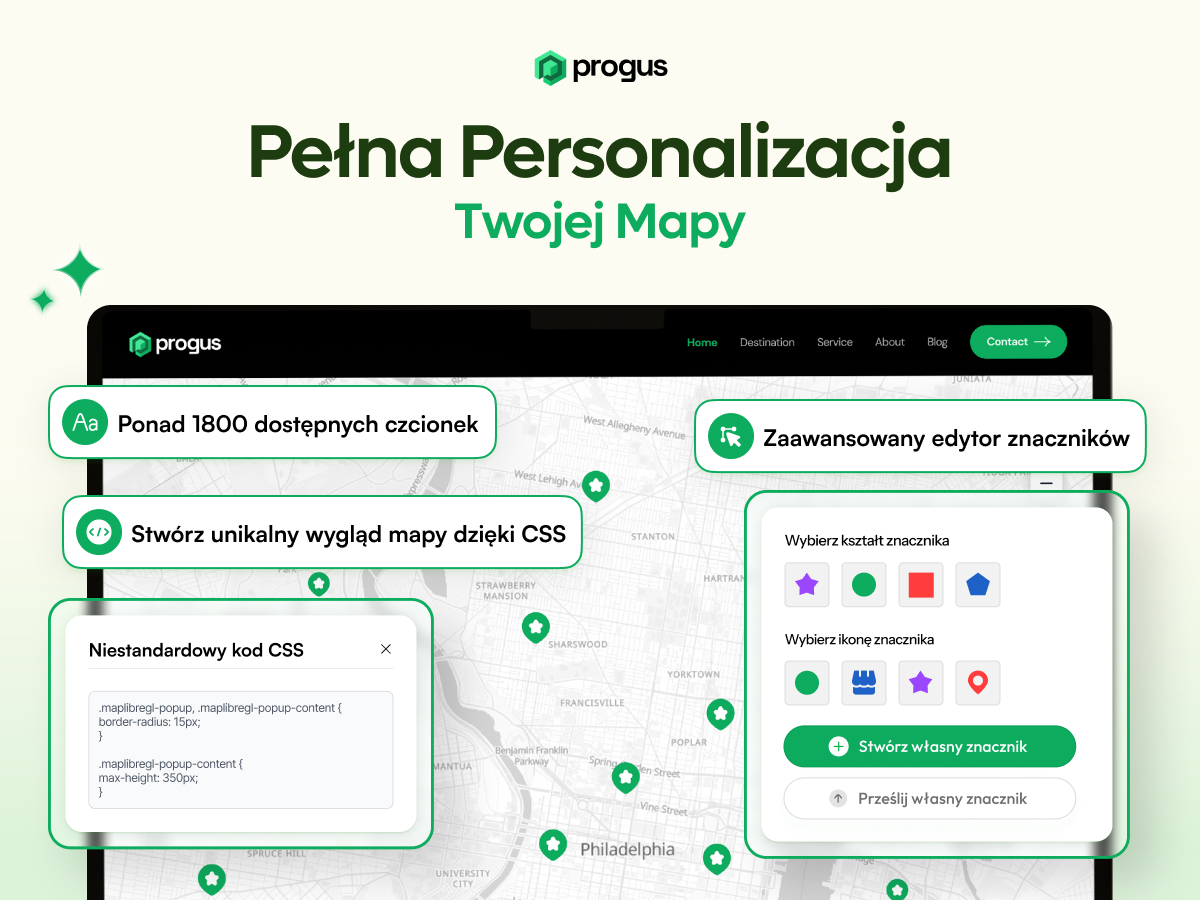 Wiele stylów map, personalizowane znaczniki, kolory i tłumaczenia