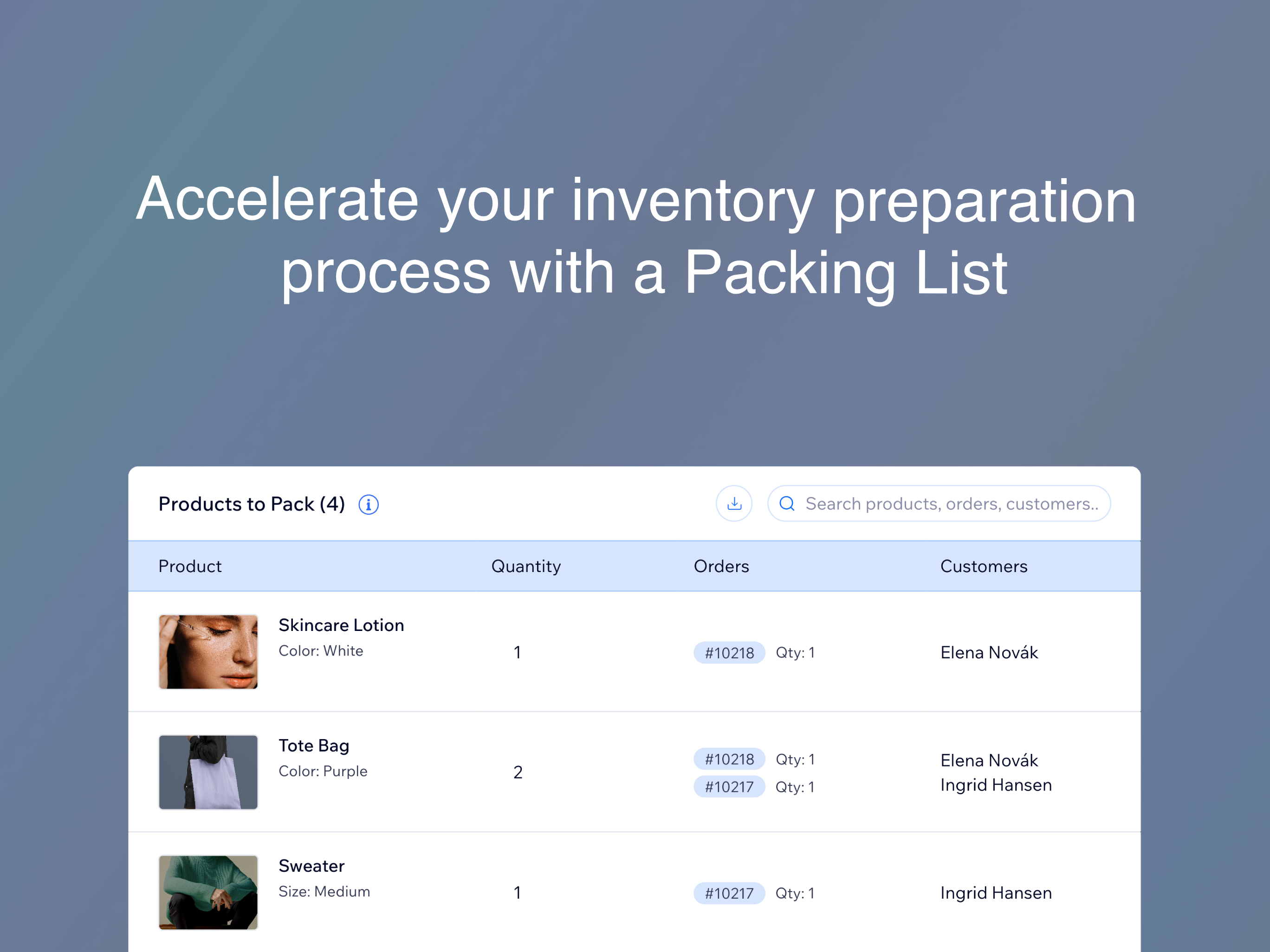 • Access a packing list & the order history