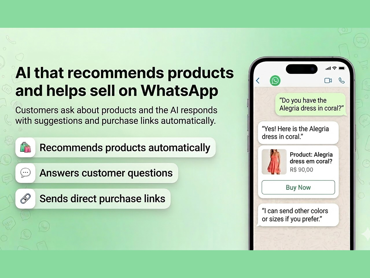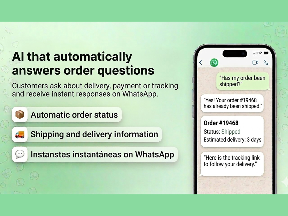 The AI understands messages, images, and audio sent by customers, providing fast and natural responses in multiple languages. You can also train the assistant with information from your store to answer frequently asked questions and automate a large part of customer support.